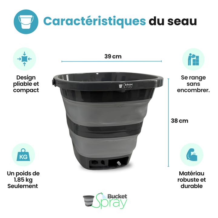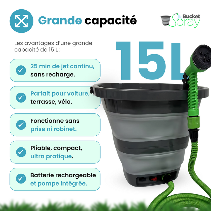 Bucket Spray – Seau d’eau pliable avec pompe rechargeable (15L)