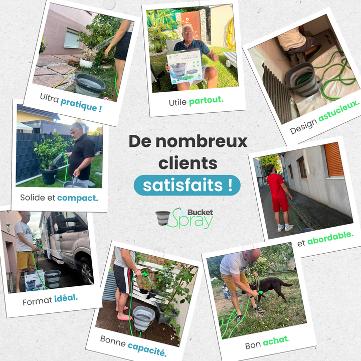 Camping, jardinage, lavage de voiture... Nos utilisateurs témoignent : Bucket Spray change la donne !